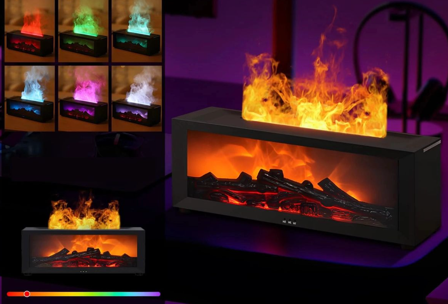 Choose between different flame and mist intensities, with multiple flame colors to match your mood — from soft and warm to bright and captivating.